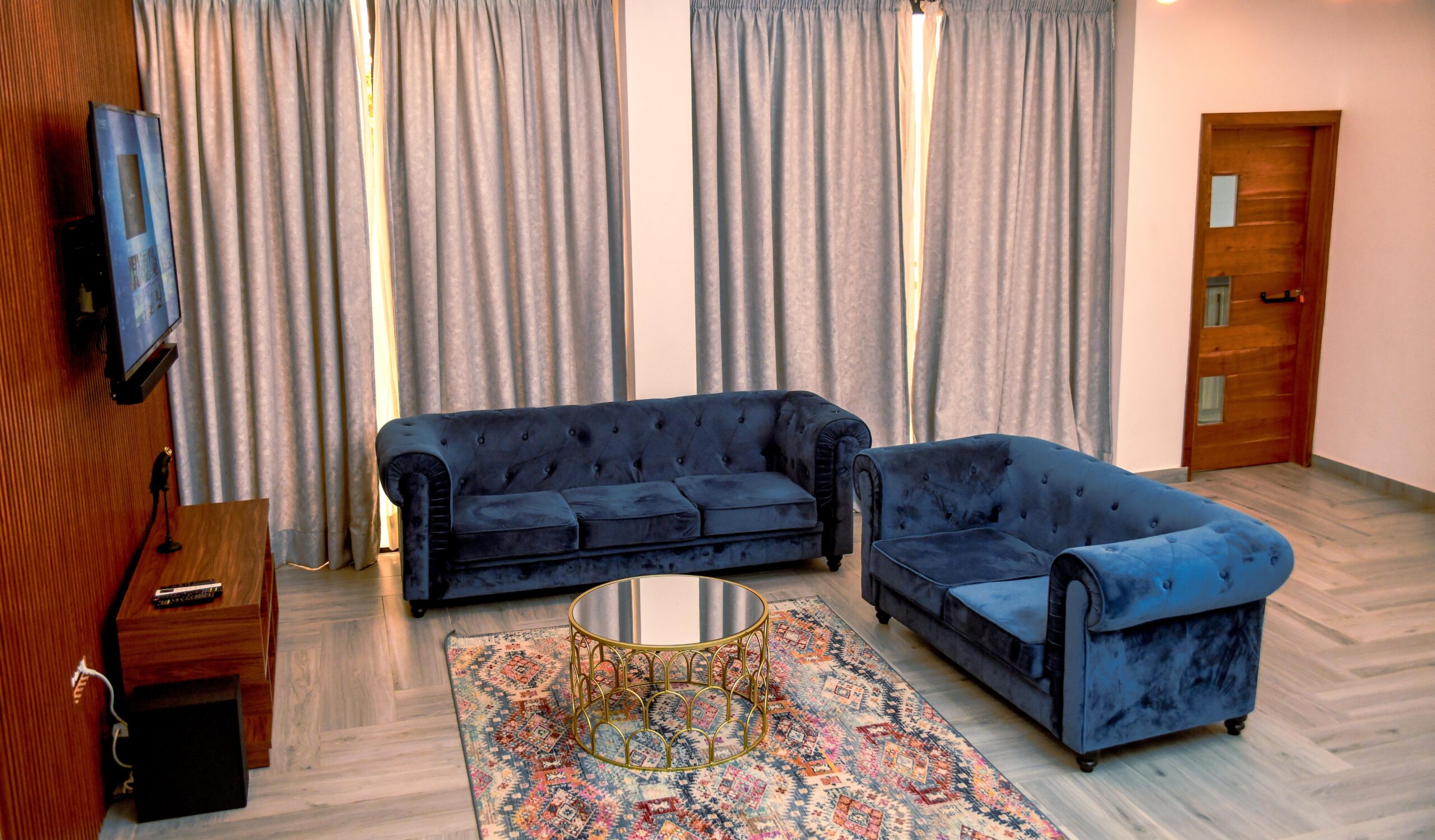 La suite Aldiana est un espace de vie spacieux et prestigieux, conçu pour offrir un niveau de confort supérieur dans un cadre élégant et accueillant. Composée de trois chambres indépendantes et d’un grand salon VIP, elle propose un environnement idéal pour les familles, les groupes ou les professionnels en déplacement collectif. Son aménagement soigné et sa disposition harmonieuse permettent de concilier intimité, convivialité et fonctionnalité, créant ainsi une véritable sensation de résidence haut standing. Chaque espace a été pensé pour garantir bien-être, tranquillité et liberté de mouvement tout au long du séjour.